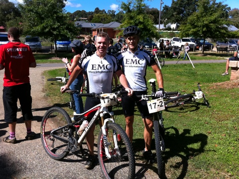 This morning we started another brilliant stage with loads of single track and decent linking roads. About 8km of twisty path in Beechworth Mountain Bike Park, some dodgy stuff alongside a link road and then fast loops on and off the Rail Trail to finish. I need to blow my own trumpet here – you will never believe the stuff I flew over today. Especially if you know how gingerly I normally approach anything vaguely technical. Jayson is of course quite at home in this terrain and inspires confidence. He even has time to call