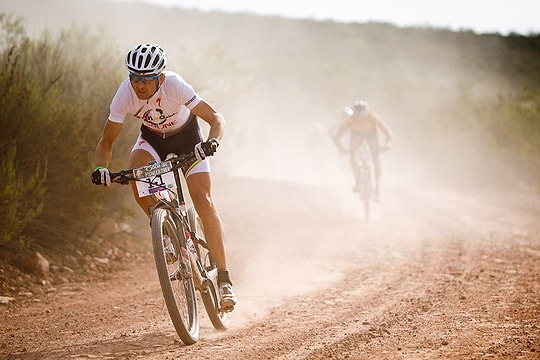At one of the many hilltops we crested today someone commented that it (the view??) was beautiful. But there was just so damn much of it. 128km, 2.5 Table Mountains and a lot of loose stones. At least those only featured from km 80 to 105! Some wit asked if it was 2 stages ridden in error over just one day.