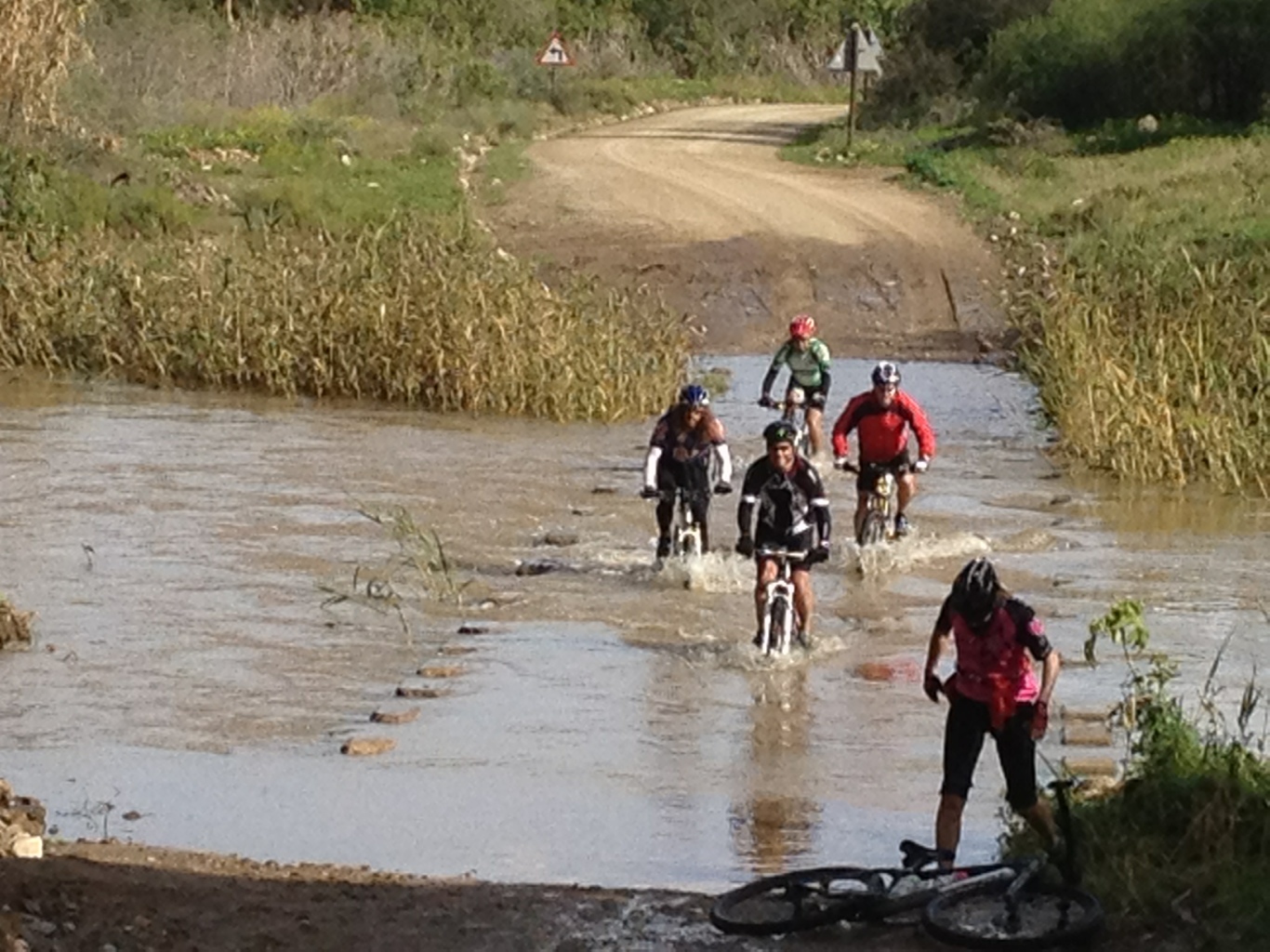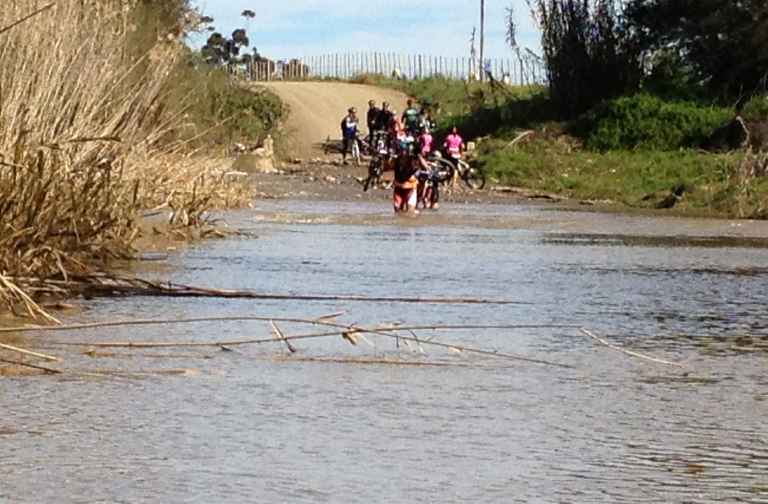 All in all we had to ford the river about six times but most were quite rideable although up to the wheel axle is some cases. Although not all chose to ride. At the first wading quite a few riders had elected to remove their shoes to keep their feet dry. This strategy was abandoned at the second crossing. Apart from Nicky. She stuck to her guns and each time ceremoniously deshod and reshod at each crossing. Fortunately for the rest of us with sodden shoes, the sun was warm – so despite the moderate temperature it was not too bad having wet feet. Not great mind you!