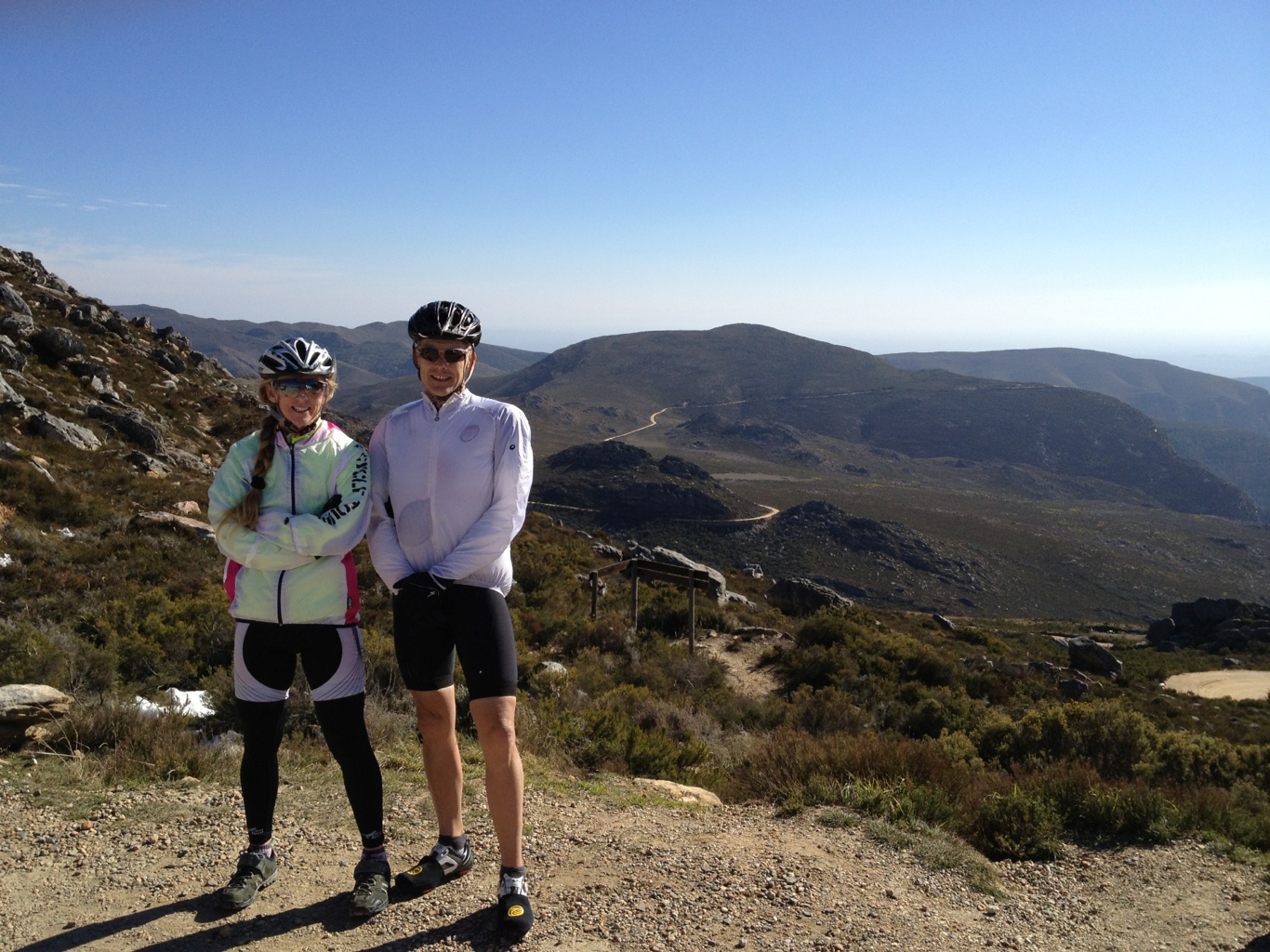 The Swartberg pass links the town-let of Prince Albert to Oudtshoorn via a gravel road rising 1000m in about 10km – a robust affair providing a daunting view of the upper switchbacks which are built up on retaining walls rather than cut into the slope. The Teeberg switchback gives false hope as it is still another 4km to the top. With the recent heavy snowfalls there was still a bit of snow lying in the shadows near the summit so it was chilly as expected. A quick stop for hot drinks and snacks (cold) from the Landrover was quite welcome.