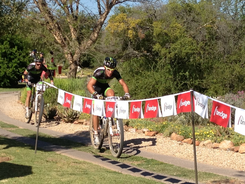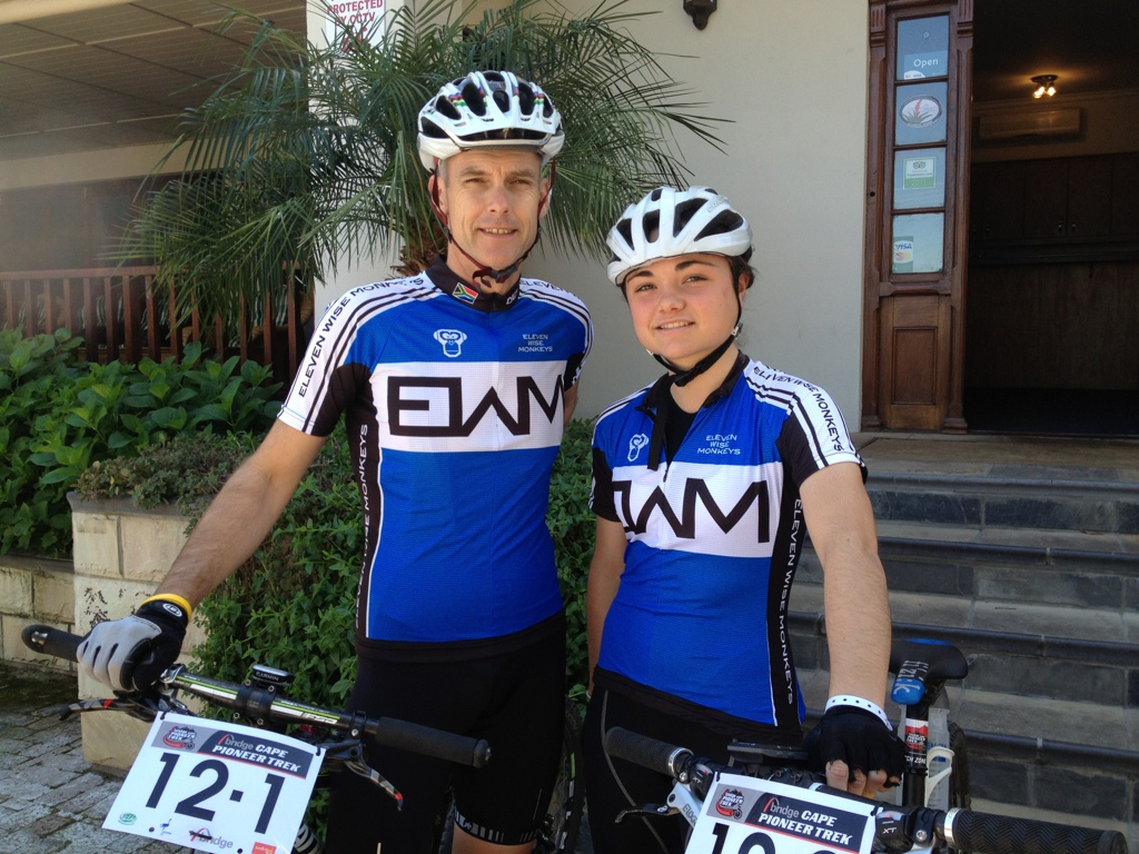 Onto the rivet! As usual, the maxim of start off slow and get slower is often thrown out the window when the race actually starts. Team Eleven Wise Monkeys hit the start line of the 15km prologue at 13h31 this afternoon and heart rates were soon red lining. On the first short climb Emily called “uncle” and we backed off to a more reasonable pace. Or at least I thought so!