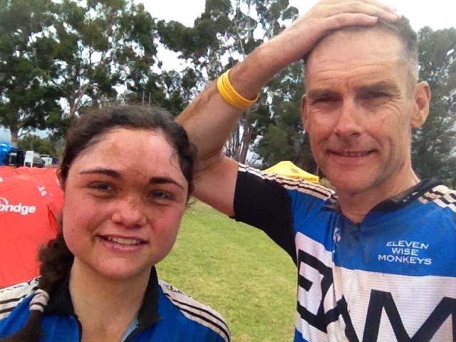 We chased hard. 92%-94%. We caught 2 teams quite quickly and then amazingly, the other 3 about 300m out. The last 200m are a really steep bit on tar for about 120m and then into the school grounds. A big effort and we passed them all and hit the line a minute ahead. 35th place in 4h49 and some change. 104km, 1720m ascent. Great effort.