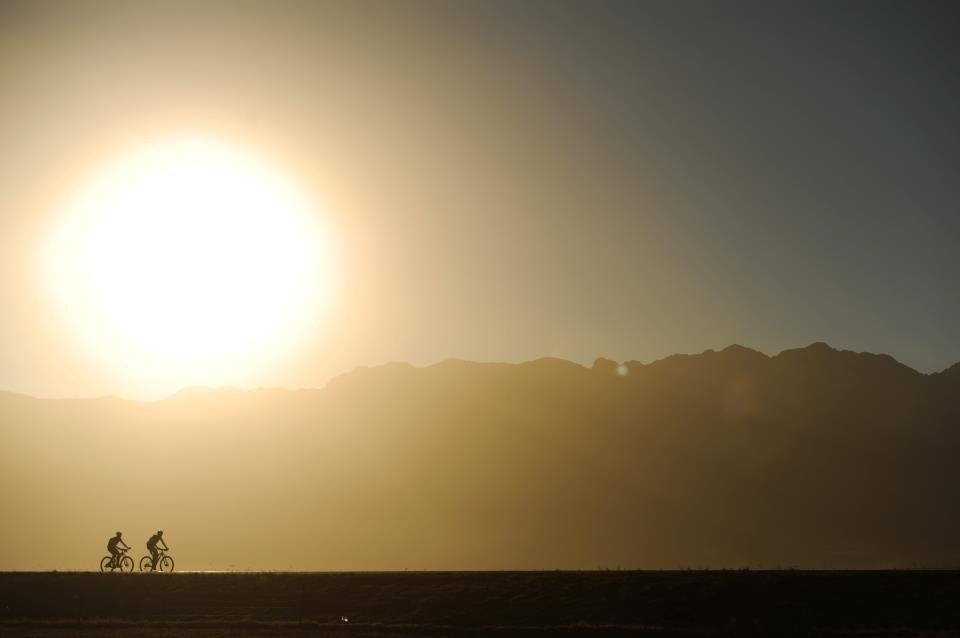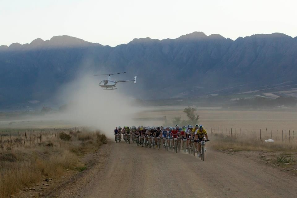 We left Tulbagh knowing that the first 40km to WP1 (water point) was long gravel roads and fast jeep track. Sitting behind a lead rider the slipstream offers up to 25% advantage in effort required so bunch riding was going to be critical to maintain our placing. It took some really hard riding just to shelter in the group and at WP1 we were only 11 minutes off the leaders. This probably sowed the seeds the of the problems we were to experience later.