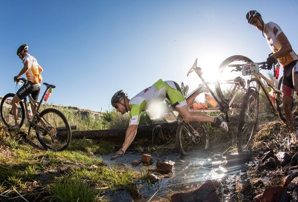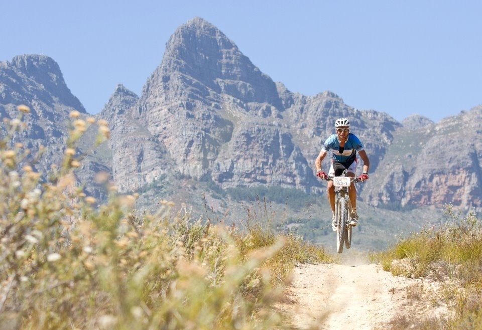 After a while we cycled on slowly and as with all good things, the climb came to an end. Near the top we stopped at a small stream and filled our bottles with the Capes finest mountain water and poured a whole lot more over or heads. The renowned single-track descent put a smile back on his face and a spring back in his pedal strokes. One more effort up and over the last bump and we were screaming down the gravel roads to the finish in Wellington.